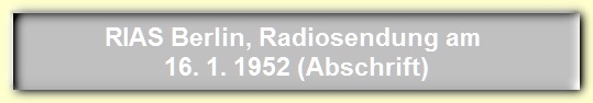 Radiosendung bei RIAS Berlin, 16. 1. 1952, 23:10 Uhr.